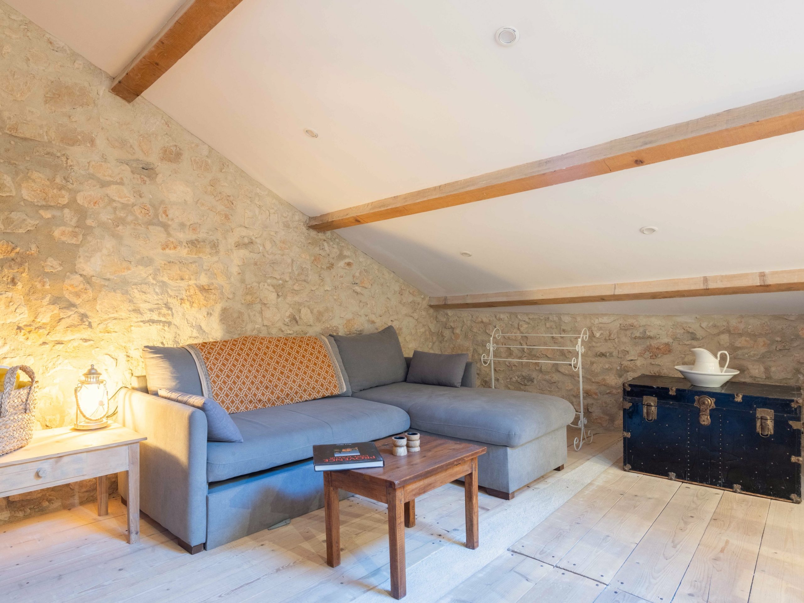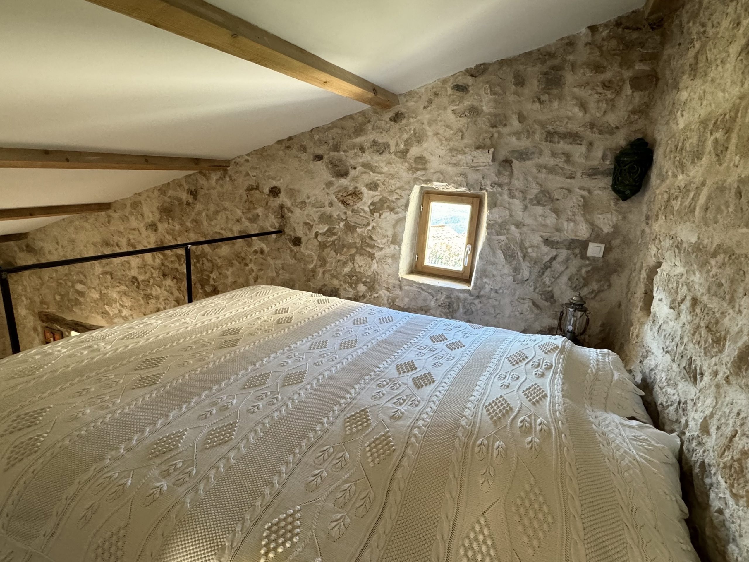1er étage en mezzanine (mansardé) : chambre ouverte avec lit double (160 cm) ; deuxième pièce séjour/chambre secondaire ouverte avec canapé-lit double (140 cm).