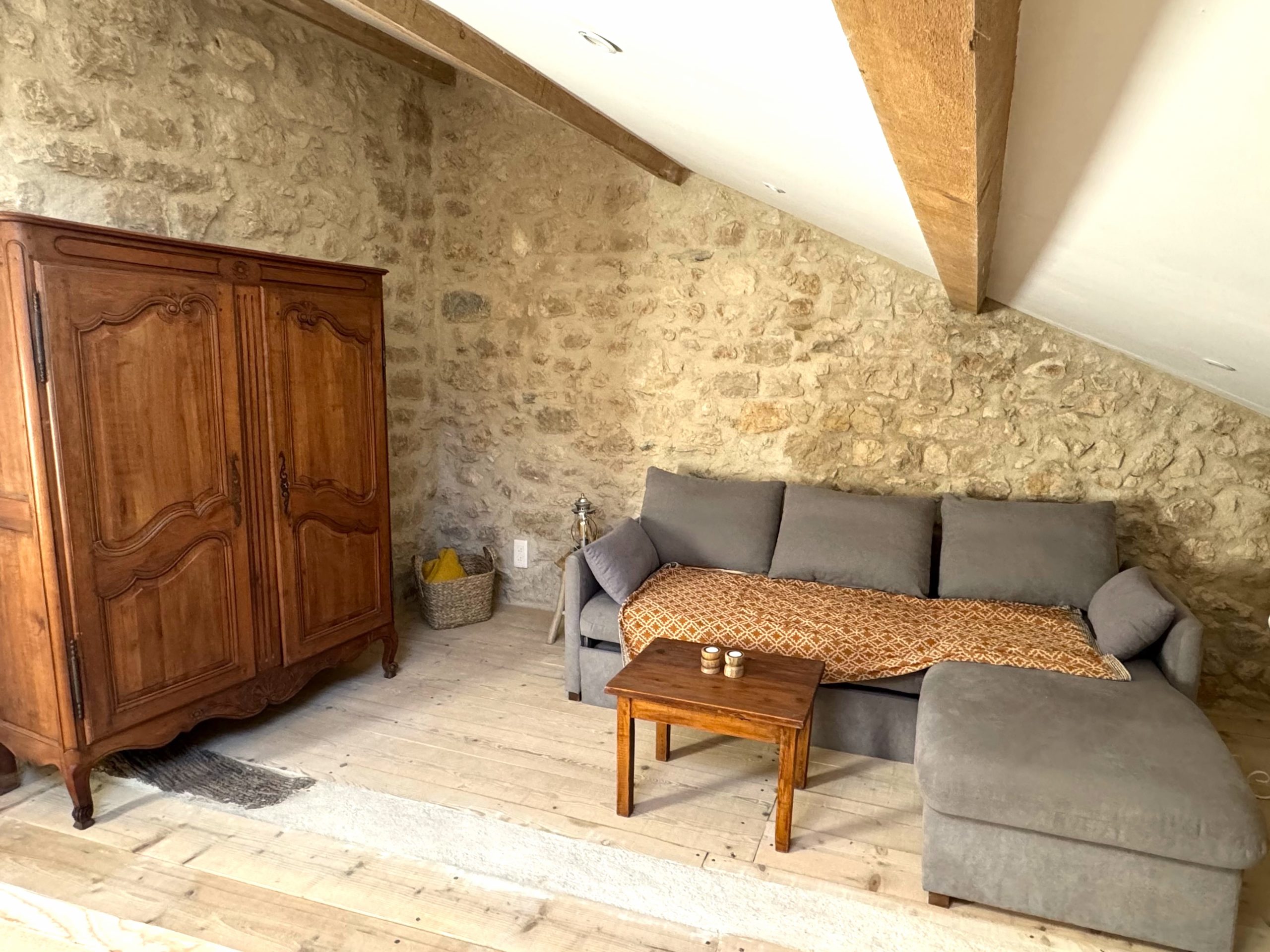 Ce logement est idéal pour un couple (ou avec un ou deux adolescents). Toutes les pièces sont ouvertes entre le rez-de-chaussée et la mezzanine, offrant une atmosphère conviviale et lumineuse.